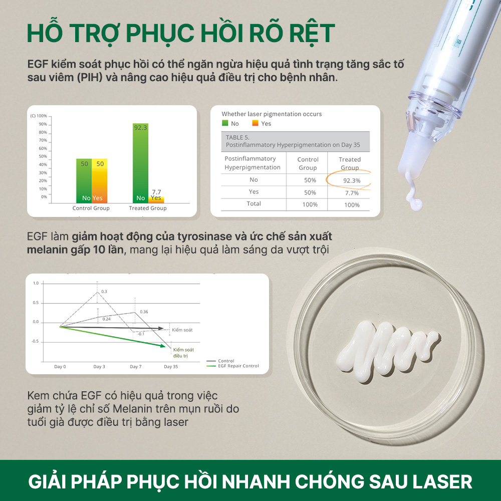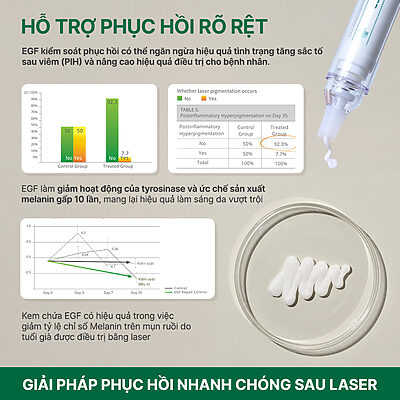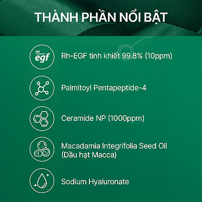 – Nồng độ EGF cao nhất đến 10 ppm, nhanh chóng hỗ trợ phục hồi làn da tổn thương