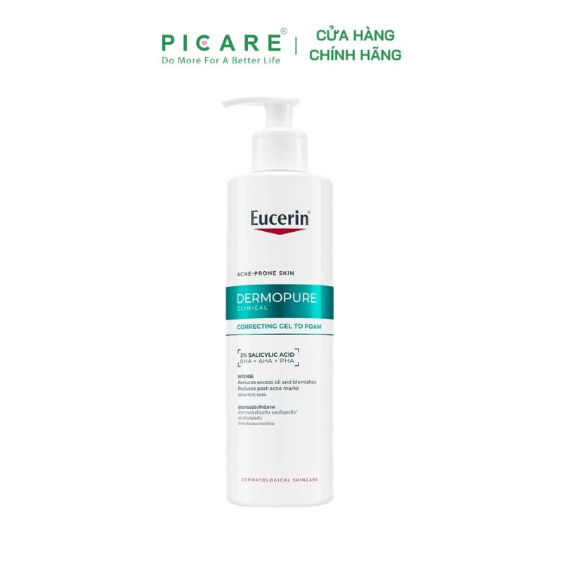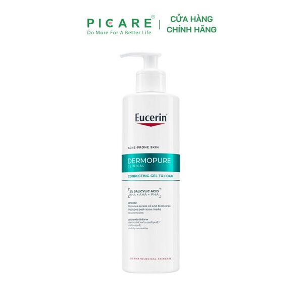 Gel rửa mặt cho da mụn Eucerin 3X Treatment Gel To Foam Cleanser 400ML