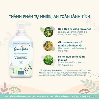 – 100% thành phần tự nhiên, không hương liệu, được kiểm nghiệm da liễu.