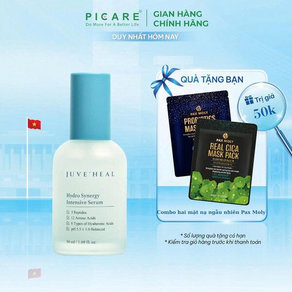 Juve’Heal Hydro Synnergy Intensive Serum 50ml cấp ẩm, giúp tăng cường độ đàn hồi của da với các axit amin và peptide, đồn thời bảo vệ da bằng cách tăng cường hàng rào bảo vệ da với liposome ceramide.- Picare là nhà phân phối độc quyền Juve’Heal tại Việt Nam.