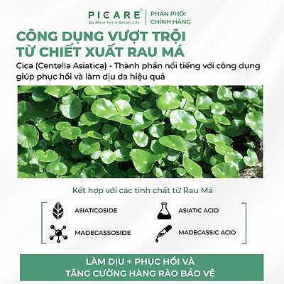 – Hỗ trợ làm dịu da tức thì: Hàm lượng cao nước lá Rau má (20%) cùng các hoạt chất đặc trưng như Asiaticoside, Madecassoside giúp làm dịu nhanh tình trạng da khô rát, khó chịu, mang lại cảm giác dễ chịu ngay khi thoa.