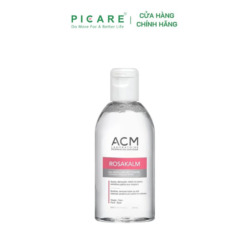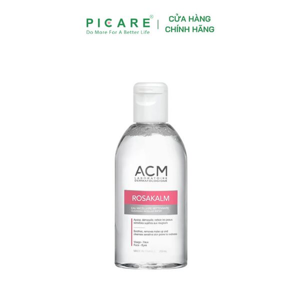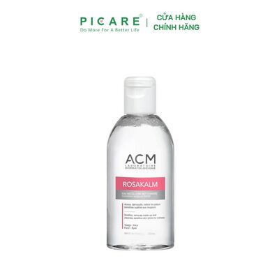 Nước tẩy trang cho da nhạy cảm ACM Rosakalm Cleansing Micellar Water là sản phẩm nước tẩy trang 3 trong 1 với tính năng: Làm sạch, loại bỏ lớp trang điểm và làm dịu làn da mà không cần rửa lại bằng nước. Sản phẩm tẩy trang dạng nước sử dụng được cho cả vùng mặt và mắt mang đến một làn da tươi mới sau khi sử dụng mà không làm khô da, phù hợp trên cả các làn da “khó tính” nhất như da nhạy cảm, dễ nổi mẫn đỏ.-Picare là nhà phân phối chính hãng của ACM tại Việt Nam.