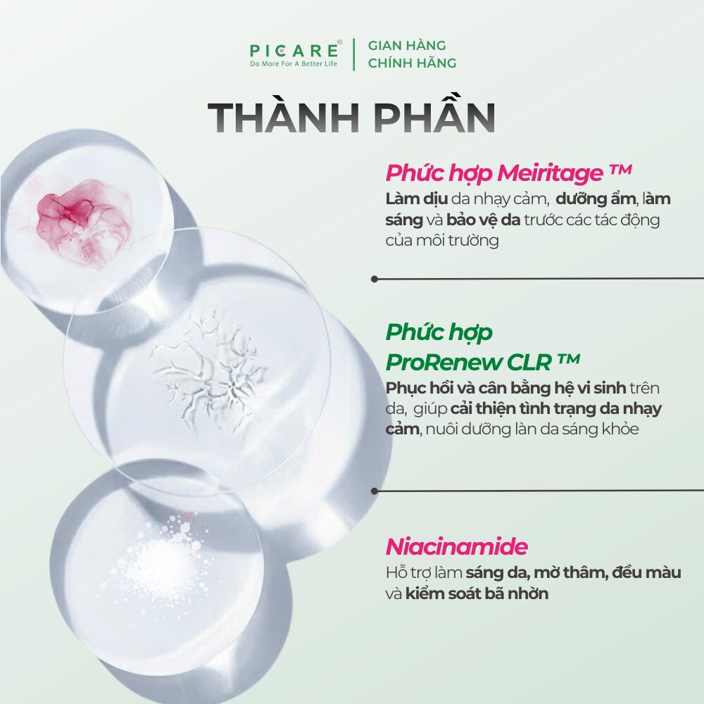 – Niacinamide: Cải thiện tình trạng mụn, kiểm soát dầu nhờn. Hỗ trợ cải thiện sắc tố đen trên da